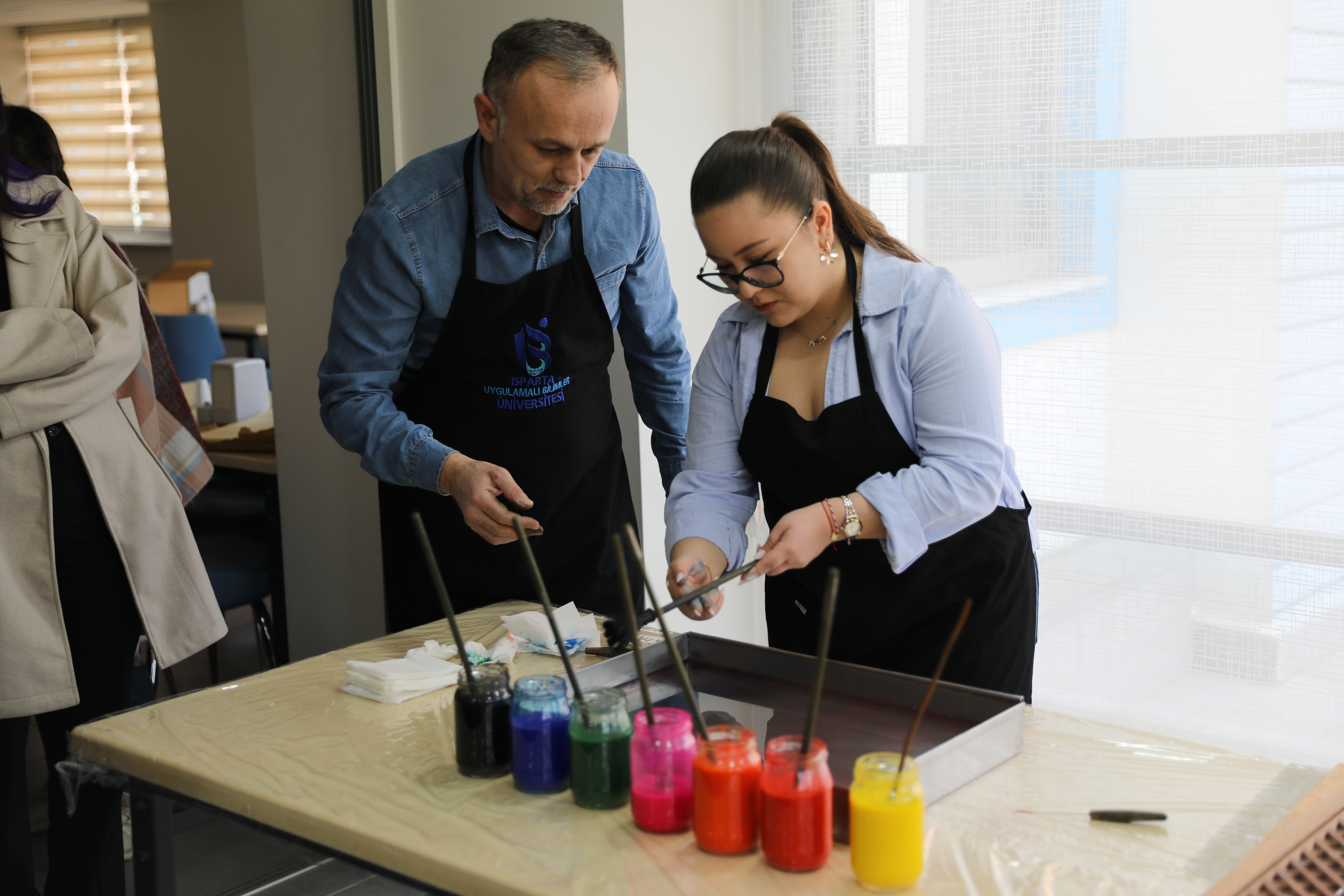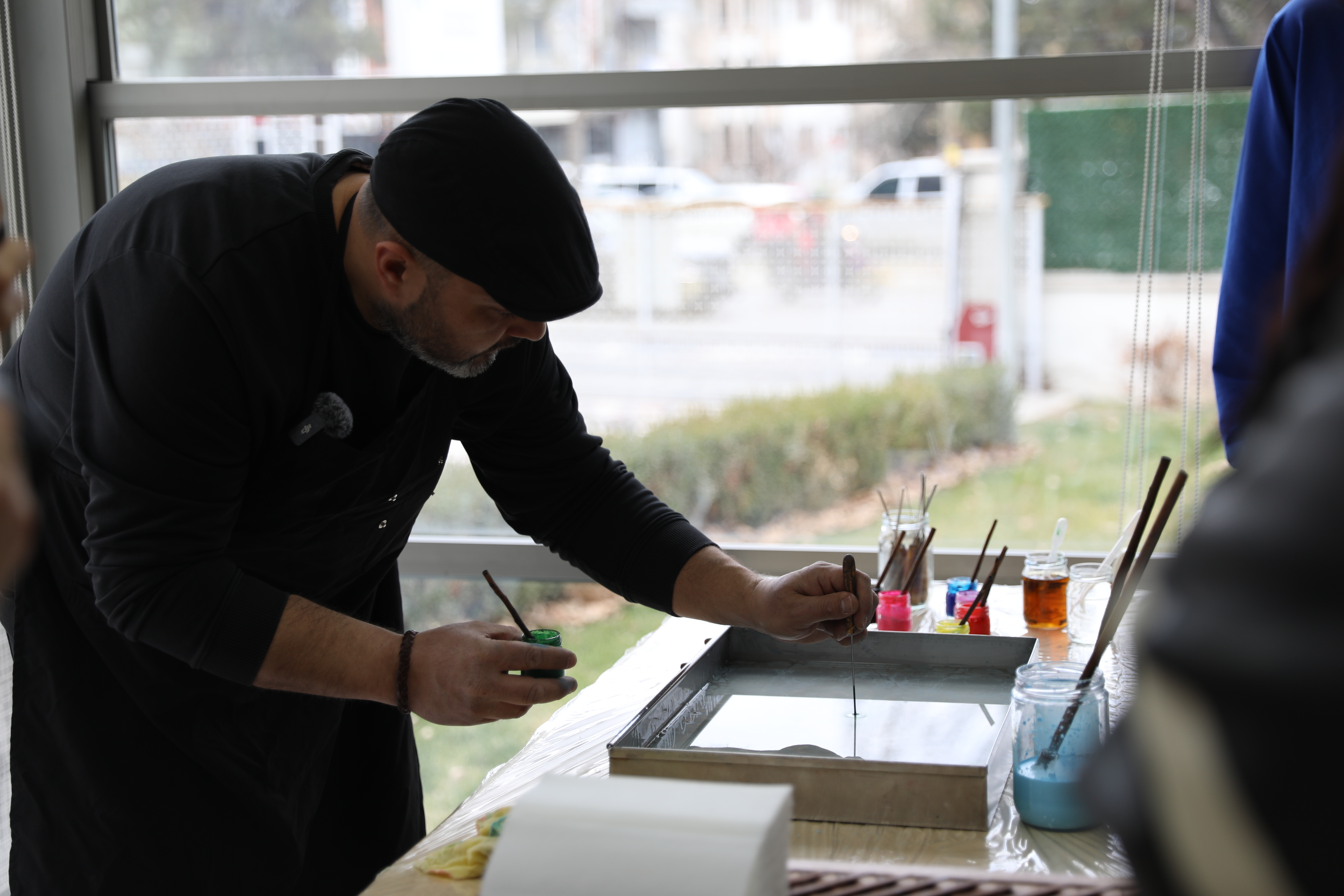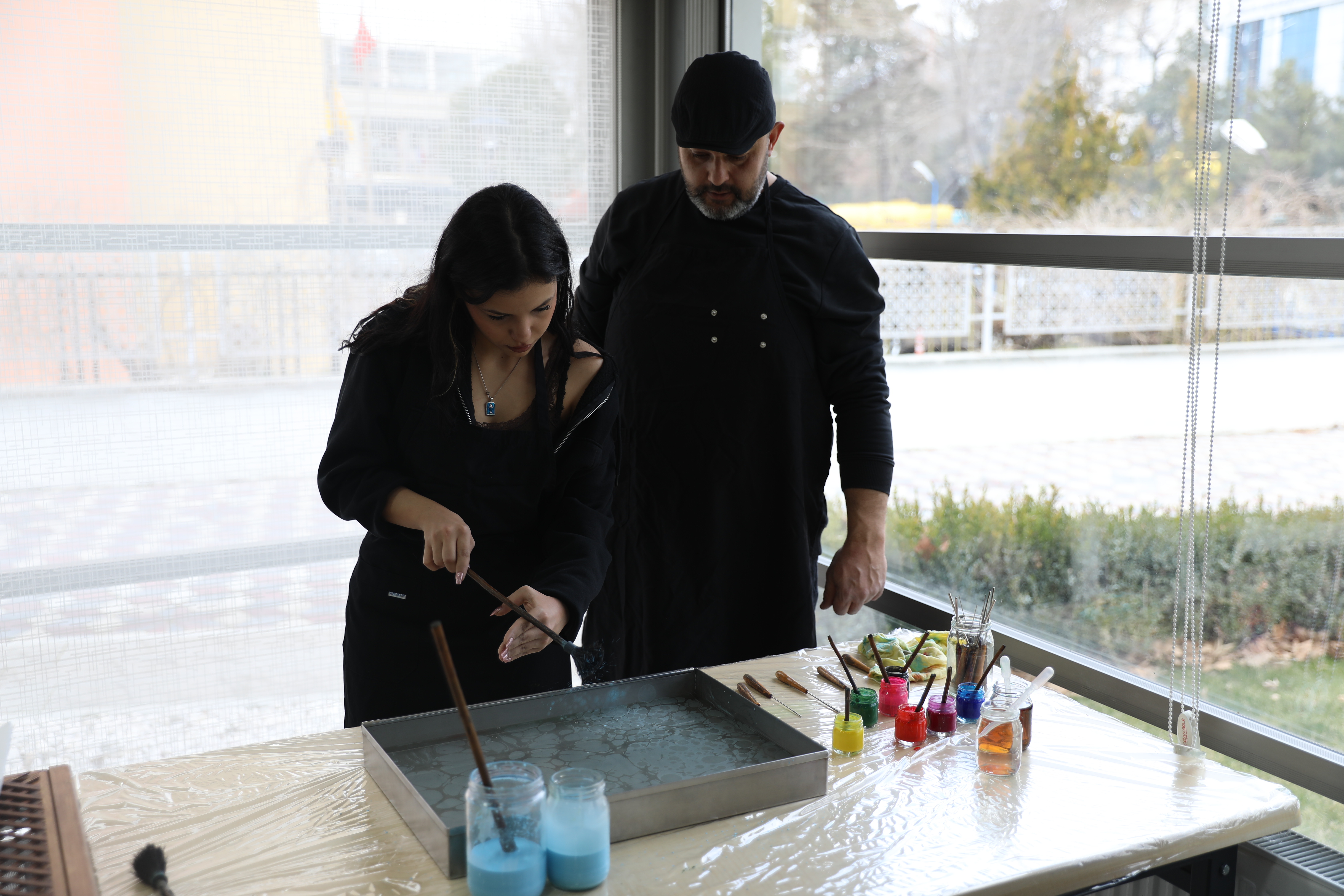 Etkinlikte katılımcılara ebru sanatının temel teknikleri hakkında bilgi verilirken, uygulamalı çalışmalarla sanatın inceliklerini deneyimleme fırsatı sunuldu. Katılımcılar, suyun yüzeyinde oluşturulan desenleri kâğıda aktararak kendi ebru çalışmalarını yapma imkânı buldu.